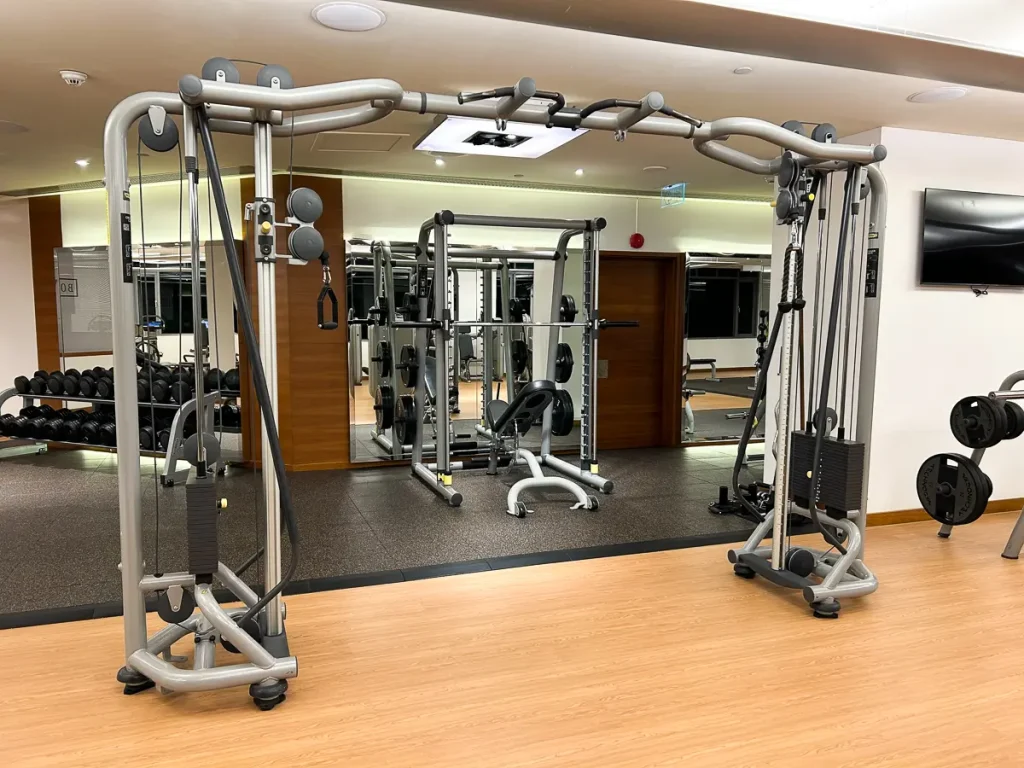 ベンチプレス、パワーラック、スミスマシンなど、本格的なトレーニング機材も揃っています。
