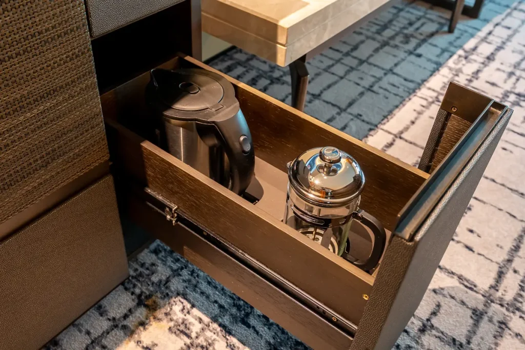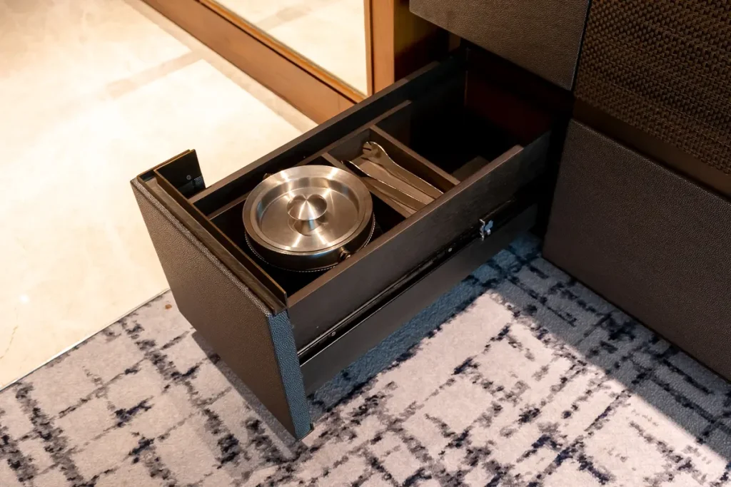 引き出しの中には、スナック、ブランデーなど。こちらも有料です。